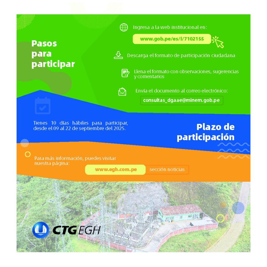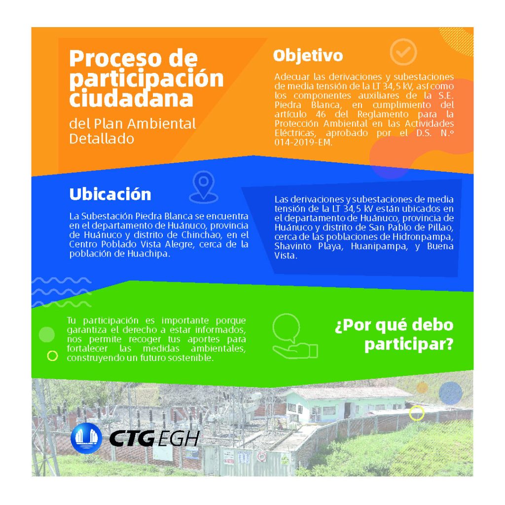Empresa de Generación Huallaga presenta el Proceso de Participación Ciudadana del Plan Ambiental Detallado (PAD) de la Línea de Transmisión de 34,5 kV S.E. Piedra Blanca - P.C.H. Chaglla.